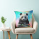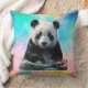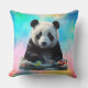 Um panda olha curiosamente para um grupo de peixes coloridos nadando na frente dele. O peixe vibrante contrasta com o pelo monocromático do panda, criando uma cena de chamas.