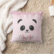 Rosa rosa rosa, travesseiro do rosto do panda dourado. Glamorosa cara de panda kawaii. Parte superior do travesseiro decorada com brilho rosado sujo. Personalize e adicione facilmente seu nome e monograma para personalizar o travesseiro.