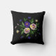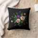 Um travesseiro de bordado bonito com buquê púrpura, azul e branco sobre fundo preto faz uma incrível decoração domiciliar. Presente perfeito para aniversário, casamento ou festa de inauguração. Um presente excelente para o amante da natureza.