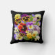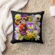 Estas bonito pansias coloridas destacam-se contra o fundo preto para criar um Travesseiro decorativo floral espantoso, que os amantes das flores certamente apreciarão