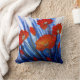Uma pintura acrílica de papoilas vermelhas, em um campo de grama abstrato azul.