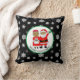Almofada de Natal de Papai Noel afro-americano com fundo de flocos de neve vermelhos e brancos.