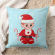 Papais noeis de Natal bonitos filhotes de elfo e doces em Travesseiro decorativo azul claro. O texto doméstico doce pode ser personalizado.