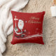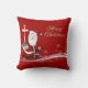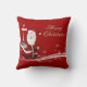 Um desenho animado Papai Noel e seu trenó encheram com presentes para entregar do Polo Norte. Fundo vermelho brilhante com decorações brancas de neve. Design de travesseiro decorativo de Natal bonito.