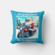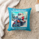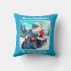Um Papai noel alegre corre na neve na moto. Deve ser assim que ele percorre os outros 364 dias do ano.