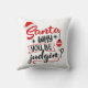 Engraçado citação de Natal em tipografia vermelha e preta. A imagem está em ambos os lados do travesseiro.