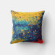 Este travesseiro exterior caracteriza um teste padrão abstrato da textura do splatter da pintura em um esquema de cores inspirado em férias de verão na praia. As cores incluem azuis do céu e de oceano, amarelos arenosos da luz do sol, e vermelhos da lagosta.