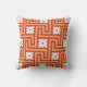 Art Deco Chave grega ou padrão labiríntico travesseiro em laranja-coral escuro e médio acentuado com travesseiro exterior branco