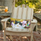 Um gato e um colibri? Este duo improvável do junco do peso de Janet decora este travesseiro exterior. Pnha pouca cor sobre seu pátio! Sinta livre selecionar uma cor para a parte traseira que combina sua decoração.