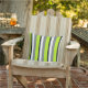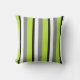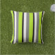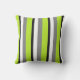 Este travesseiro colorido ao ar livre apresenta um padrão riscado em cinzas, limões, preto e branco.
