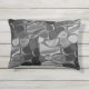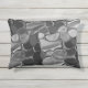 Almofada Para Ambientes Externos Cinzas claras e formas arredondadas escuras.