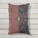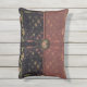O velho mundo europeu, exótico e escuro, com um ligeiro sabor do Oriente, o belo padrão de ZoeSPEAK, em cores naturais nesse Travesseiro de Destaque, foi feito a partir de uma fotografia original de uma latência de ferro em formas brutas e de um tecido tropical. Frentes de palma e outras folhas tropicais, em tons de verde claro, terracota e bege, descansam graciosamente sobre fundo negro atrás da estrutura. O design está no estilo de um saco de embraiagem ou bolsa, com um botão de medalhão floral fechado sobre fundo escuro, um tecido liso pisca sobre um tecido esmaecido e texturizado do mesmo padrão. O flap é coberto com uma fita grossa cor-de-rosa-salmão.