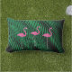 Almofada Para Ambientes Externos Flamingos & folhas de palmeira tropicais em