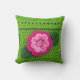 Almofada Para Ambientes Externos Flor-rosa, Impressão de crochê verde-rosa
