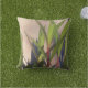 O trabalho de arte retrô deste Travesseiro decorativo ao ar livre foi criado de uma fotografia original de ZoeSPEAK de folhas longas e finas verdes à luz do sol da tarde, lançando sombras azuis na parede do stucco atrás. As plantas são petúnias mexicanas, com caules avermelhados. O humor é sonolento na tarde de verão de tempos anteriores.
