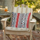 O travesseiro exterior em do sudoeste/asteca inspirou, listras geométricas modernas - vermelho rico do tomate e máscaras de cinzento/cinza com acentos preto e branco