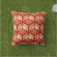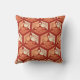 Travesseiro exterior em um clássico padrão quimono japonês de gruas estilizadas, arranjadas em um padrão de hexágonos, em laranja e creme médio e pastel, em fundo laranja de mandarina profunda