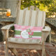 Este travesseiro em forma de lombar ao ar exterior para seu entretenimento ao ar apresenta riscas ousadas e hibisco na frente com a mensagem havaiana de Komo mai e noho - significando "Entre, sente, descanse". O segundo lado tem seu monograma em uma armação redonda de hibisco com uma borda central do verde limão e coordenando fundo rosa. Esta coleção do Hibiscus Rosa-Quente é concebida exclusivamente pelo diretório SalonOfArt.com e todos os itens da série podem ser misturados e combinados.