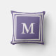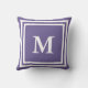 O travesseiro decorativo ultravioleta tem um monograma branco no centro.