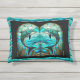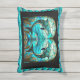 Travesseiro de sotaque interior ou exterior. Azul de Praia e Golfinho Negro no Oceano em Design de Vidro Mantido Faux. Monograma com o tema Name, Green, Blue e Black Modern Beach