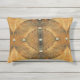 O padrão original de abstrato neste Travesseiro de Destaque Interior/Externo foi projetado a partir de uma fotografia original de ZoeSPEAK de uma casca de mar. A foto de close-up das cristas brancas foi combinada para se assemelhar a azulejos de chão de parquet, cor marrom-ouro. Os azulejos têm um toque extra, estudados com formas de diamante metálicas curvas marcando as costuras.