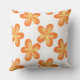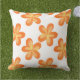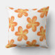 Travesseiro impresso com padrão original de flores acrílicas em amarelo e laranja sobre fundo branco.