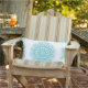 Almofada Para Ambientes Externos Padrão Geométrico do Mandala Branco Turquesa