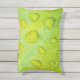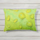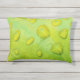 Este Travesseiro de Ênfase Externo/Interior apresenta uma fotografia abstrato original de ZoeSPEAK de gotas de chuva em uma folha. Na foto de close-up, vemos a textura e as veias da folha ampliadas nos contornos das gotículas de água. A folha verde amarela brilhante reflete o azul e o amarelo do céu e a luz solar.