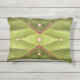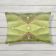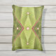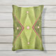 O tecido de tapeçaria abstrato neste Travesseiro de Destaque ao Exterior foi feito de uma fotografia original de uma folha de uva marinha. A foto de encerramento mostra o padrão das veias da folha verde-oliva, cor-de-rosa-claro, que levam ao caule vermelho-acastanhado mais escuro. O design de envelope, como um travesseiro, é tufado com cinco miçangas rosa pálidas.