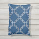Este é um travesseiro de sotaque azul ao ar livre com um design de latência branca. Felicita todos os móveis de baralho ou pátio! NOTA: O travesseiro é tecido, mas a "tecelagem" no padrão azul é parte do impressão, não do tecido propriamente dito.