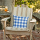 Travesseiros do guingão dos azuis cobaltos para fora. Feito nos EUA. Impressão de alta qualidade do teste padrão da sarja em cores vibrantes. Travesseiros resistentes UV e do oídio do jardim ou do pátio com um teste padrão da verificação do guingão ou do búfalo. Disponível no quadrado de 16 ou 20 polegadas e 13 por 21 tamanhos retangulares. Inserção incluída. (Também disponível como um travesseiro decorativo interior do sofá ou do sofá, apenas o algodão ou o poliéster seleto da aba do tecido).