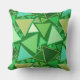 Mosaico geométrico moderno do século médio de triângulos esboçados em tons de esmeralda e jade verde, aqua e bege, num travesseiro verde esmeralda ao ar livre