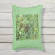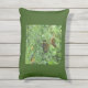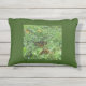 Um Travesseiro ao ar livre, Verde-claro na frente/ Verde-escuro, no verso, com uma Imagem de uma Linda Borboleta Monarca, deitada na grama, no centro,=( em ambos os lados) dela.