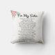 Você está procurando um presente para sua irmã? Se você está procurando presentes de irmã, este travesseiro decorativo é a maneira perfeita de mostrar o quanto você ama e aprecia sua irmã. Não há nada como algo corajoso para aquecer o coração do seu amado. Quer você esteja procurando um presente de aniversário para sua irmã, um poema de irmã mais velha, ou um presente, porque este travesseiro de irmã é o presente sentimental perfeito.