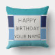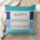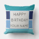 Um legal padrão listrado de matizes azuis e uma modelo de texto Feliz de Aniversário. Clique em personalizar para adicionar seu nome.