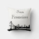 Personalize seu escritório ou espaço vivo com este travesseiro decorativo da skyline de San Francisco do divertimento, caracterizando um travesseiro branco com a silhueta preta na parte anterior e na coloração invertida no verso.