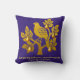 Um travesseiro decorativo festivo encantador com uma foto de um perdiz em uma pera. A imagem tem um efeito de ouro falso e está sobre um fundo roxo contrastante. Abaixo, encontram-se as palavras da tradicional canção de Natal "No primeiro dia de Natal, o meu verdadeiro amor me enviou, uma papa numa árvore de pera". A almofada elegante faz um presente de feriado ideal para a casa.