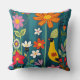 Pássaro Amarelo Whimsical com Flores, brilhante e alegre. Várias cores, incluindo Laranja, Vermelho, Rosa, Amarelo.