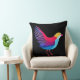 Um pássaro colorido é representado por tons vibrantes de vermelho, azul, amarelo e roxo, dando-lhe uma aparência viva e dinâmica. Suas asas se espalham bem, acentuando suas penas multicoloridas.