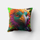 Este travesseiro tem um pássaro engraçado nele.