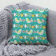 Estilo popular mexicano colorido padrão de travesseiro decorativo apresenta aves brancas e outros elementos tradicionais sobre o fundo turquesa