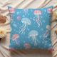 Upgrade your bathroom aesthetic with a luxurious touch by adding this stunning trow pillow adorned with a seamless pastel blue and pink jellyfish design.