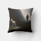 Um brilho suave destaca uma cena surreal de um carneiro perdido em terra rochosa, com um pastor atrás de um funcionarios