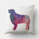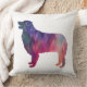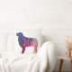 Vista lateral de Dog Breed do Pastor australiano preenchida com um padrão geométrico roxo colorido. Esta silhueta também pode representar: Aussie, Border Collie, Welsh Sheepdog, English Shepherd, McNab, Nova Zelândia, Atlas Shepherd, Mountain Shepherd, australiano Kelpie, berbere, herder boêmico, herdeiro croata, herdeiro americano, Drente, Drenthe, Gundog neerlandês Partridge Dog, Mudi, Old Fazenda Collie, Scottish Collie
