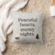 Bring a touch of serenity to your holiday home with this cozy “Peaceful hearts, snowy nights” throw pillow by Auréline Studio.