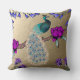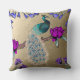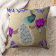 Um pavão colorido é empoleirado num galho adornado com flores vibrantes. O fundo apresenta um tom dourado com detalhes texturizados, melhorando a elegância geral da cena.