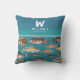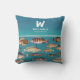 Almofada Peixe Monograma Sob Casa De Praia Do Oceano Azul