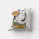 Almofada Pelicano como pescador com cana de pesca e peixe