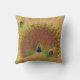 "O Elegante Travesseiro decorativo de Penas de Folha de Ouro do outono do Pavão, decoração caseira." Este é um layout de esquadrão que é uma mistura de um óleo vintage pintado com escroto rococó de pavão e folha de ouro barroco com nova arte em aquarela e pastel de petróleo, que inclui penas de pavão pintado e tonalidade de terra, paleta de cores de outono criada por artista e designer internacionalmente licenciados, Audrey Jeanne Roberts, copyright.