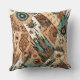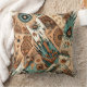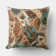 Aztec design tribal nativo americano, com uma manta de retalhos de penas boho, azul e castanho, elementos florais de aquarelas e formas geométricas.